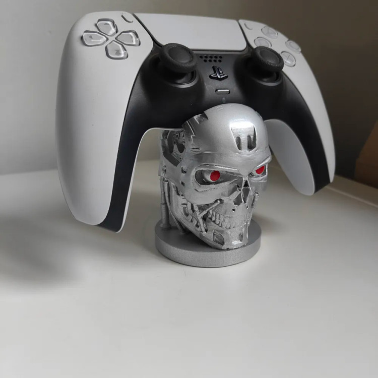 هولدر دسته ps5 و ps4 طرح ترمیناتور ساخته شده با پرینتر سه بعدی و رنگ آمیزی اکرلیک ضد آب.