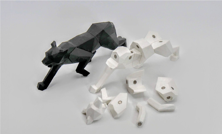 پازل ۳ اهنربایی طرح جگوار ساخته شده از پلاستیک مخصوص از فیلامنت و پرینت سه بعدی.