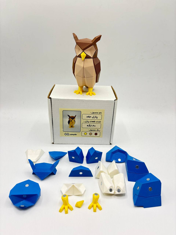 پازل سه بعدی طرح جغد با اتصالات آهنربایی